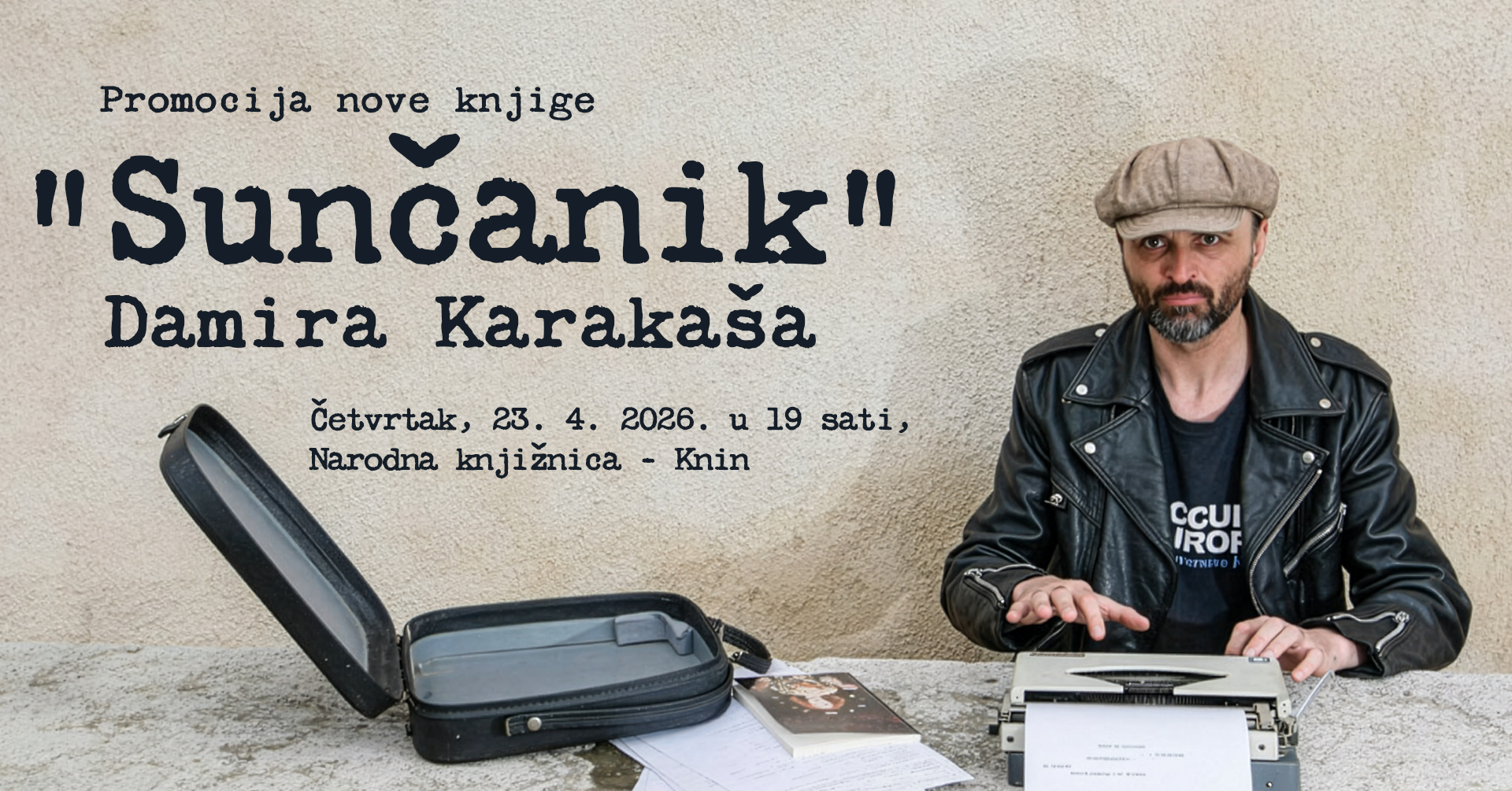 Ljubitelje književnosti za Noć knjige u Kninu očekuje posebna večer – 23. travnja u 19 sati u Narodnoj knjižnici Knin gostuje Damir Karakaš, koji će predstaviti svoj novi roman “Sunčanik”. Jedan od najvažnijih suvremenih hrvatskih autora, Karakaš iza sebe ima bogat i nagrađivan opus te prepoznatljiv književni stil koji osvaja čitatelje i kritiku.
