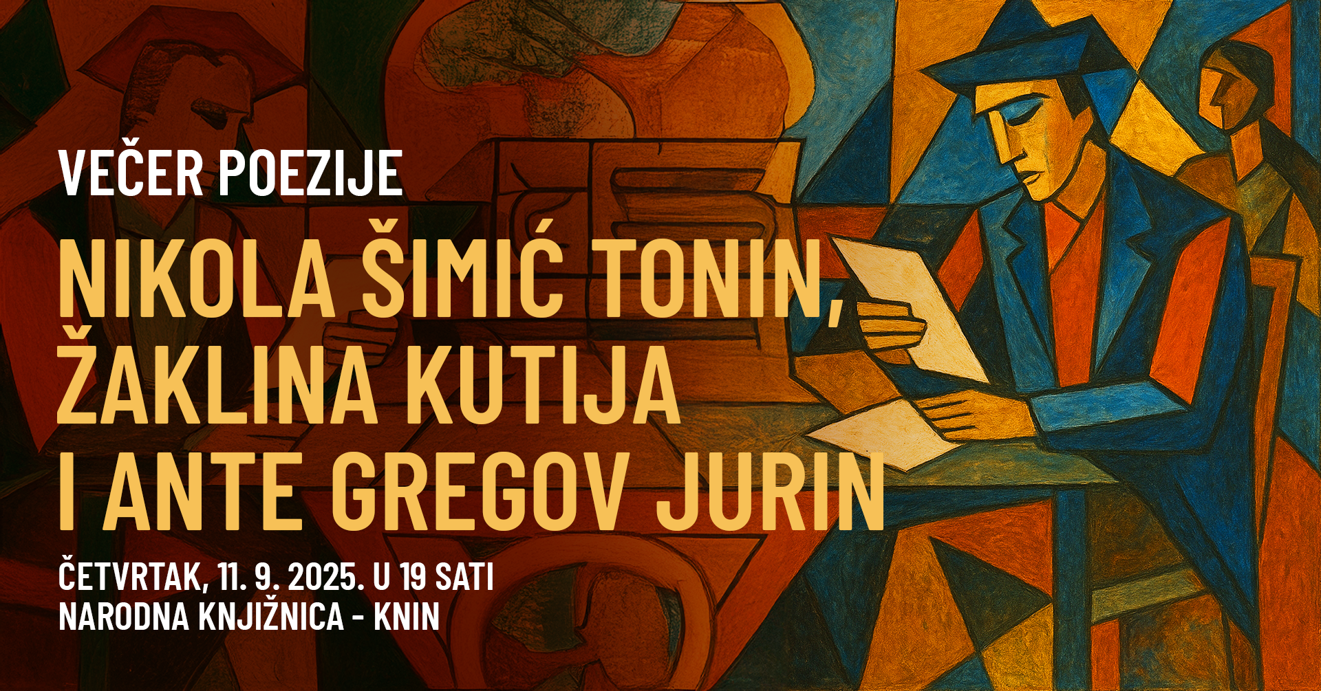 U četvrtak, 11. rujna s početkom u 19 sati, u prostorima Narodne knjižnice Knin održat će se večer poezije na kojoj će gostovati članovi Hrvatskog književnog društva Zadar.